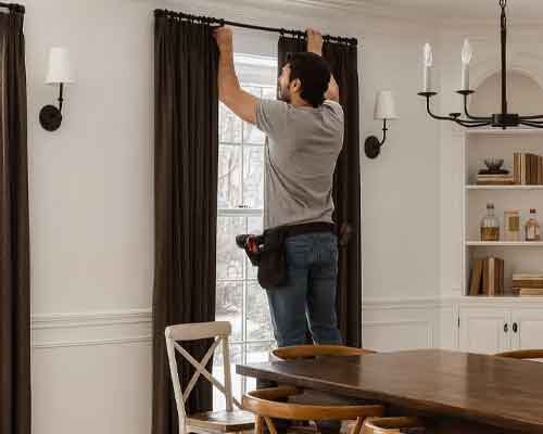 Our curtain fitting Dubai service focuses on precision and functionality. We ensure your curtains are not just installed, but perfectly fitted to your window size, ceiling height, and interior design.
